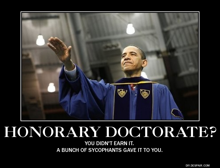 This persistent, consistent violator of the very American Constitution he falsely swore to support in his oath of office; this most lawless President in American history; this evil man who violates standing law with virtually every official action he takes, or purposely and illegally fails to take, was made a Doctor of Law by Notre Dame University. Go figure.