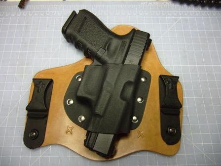 One thing I always liked about the 1911 was the flatness, which made it a good belly gun. The Glock is a little thicker, but then, these days, so am I. Just sticking the Glock in your belt under your shirt works fine, for a little while; it's too uncomfortable for all day carry. If you need to carry all day - a rarity for me - the Crossbreed holster is great for that. It's made of cow hide, and it has clips that hook over your pants and belt from the inside. You wear it between your underwear and your outerwear. The only drawback is that you have to buy pants a couple of inches too big in the waist, or you won't be able to button them (or you won't be able to breath properly - one or the other.) Wear a loose shirt un-tucked and the gun is invisible. You can't even feel it. It's very secure; easy in, easy out, no danger of falling out. The two belt clips are adjustable for height and cant.