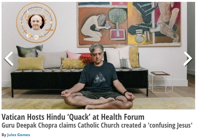 The Vatican is hosting a 'Health Forum', and it has invited a Hindu Quack, the Guru Deepak Chopra, who claims that the Catholic Church 'invented' a "Confusing Jesus", to come and teach the Church all about the need for a human health dictatorship.