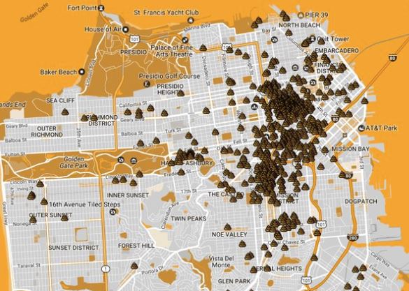 San Francisco Poop MapThe map is put out there to allow tourists to avoid the crappier areas of the once beautiful city. It is loaded down with little poop emojis, to show where all the homeless and the illegals are encamping and dumping in public, which are also the most likely places any tourist might be accosted or assaulted. As a Sanctuary City, San Francisco protects the criminals and the illegal aliens from the federal government, and tries very hard to remove all distinctions between them and the regular American citizenry, at least in the minds of the public. And, as good Marxists, they are determined to do it at all costs.