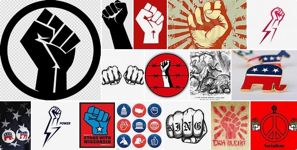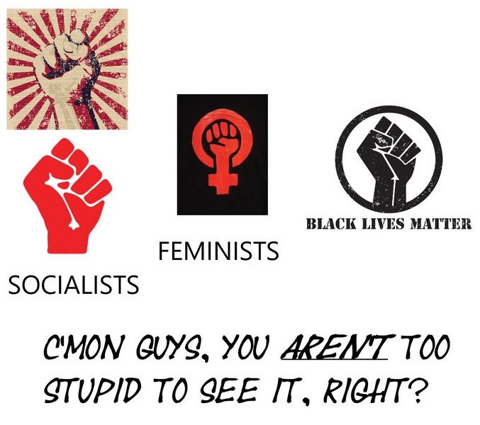 All these various fist emblems represent the Marxocrat Party voter-base. It's what they stand for. Think about that. Everything they stand for is against us.
