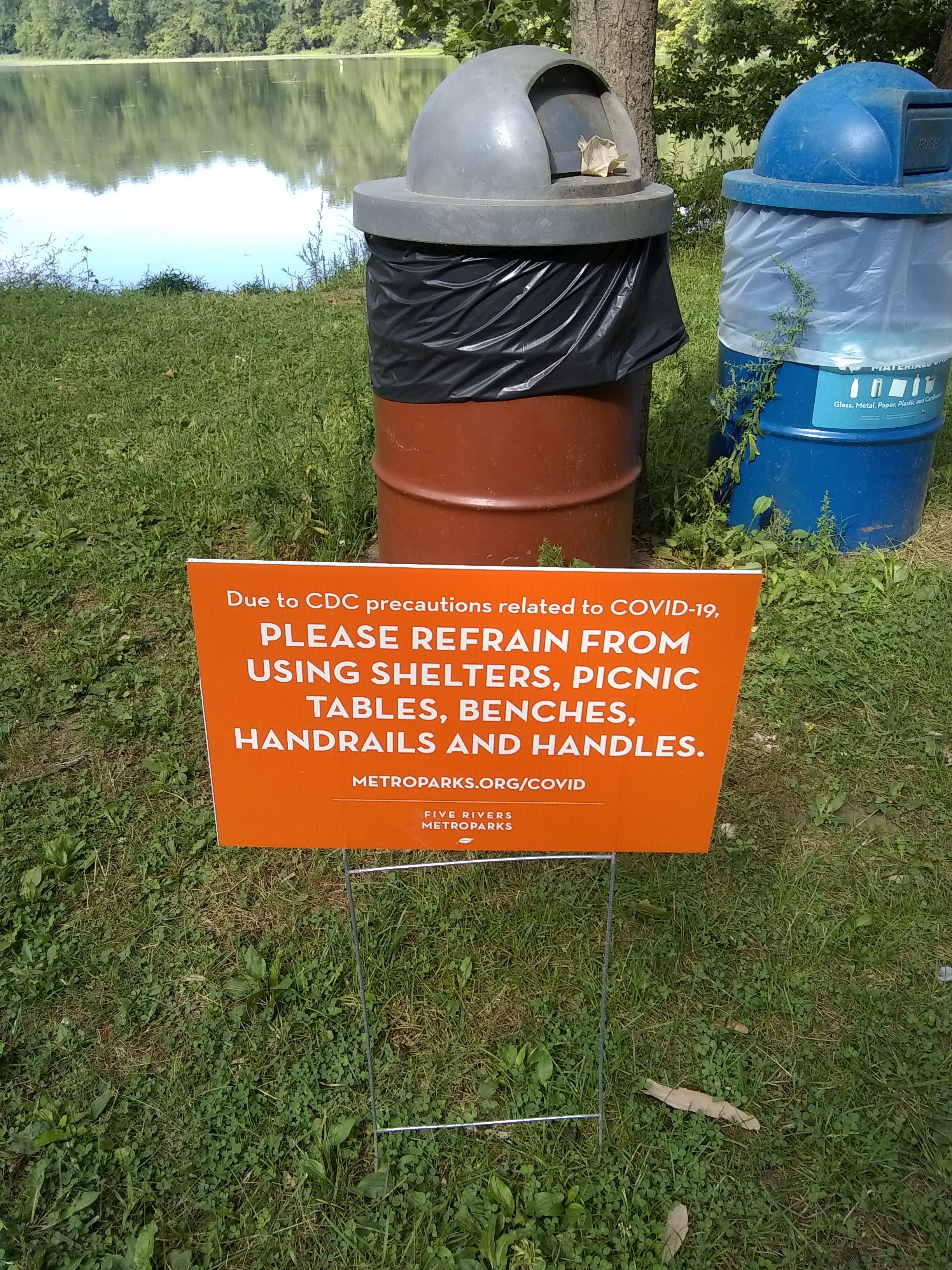 Public rest rooms in parks locked, portajohns along bike paths and recreation areas removed because of fears that you might catch cold from an outhouse. Signs in parks to please do not touch or use picnic tables or park benches. Festivals and celebrations canceled.