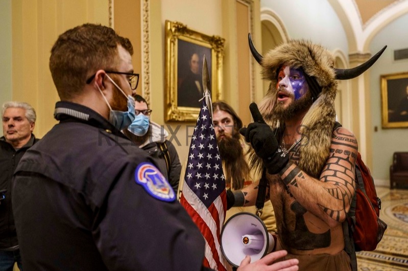 The powice let him in, and others too, who were all led in there by FBI agents all dwessed up and pwetending to be wacist white supwemacist Twump voters, but the wild Buffawo Man was the only one armed to the teeth with his big pointy spear and his vewy skawey Amewican fwag.