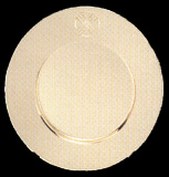 The Paten is used by the priest to hold and carry the Hosts. In ancient times the paten held bread offerings from the lay faithful. The Paten must be gold or gold-plated and it must be shallow. While it may be engraved or otherwise ornate on the outside, it must be perfectly smooth on the inside.