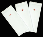 The oldest of the altar linens, it is the size of a large napkin and is under the Chalice, Paten and Ciborium during Mass. It is folded into ninths, and carefully refolded from the corners inwards to prevent any sacred species from falling. It is usually adorned with a red cross.
