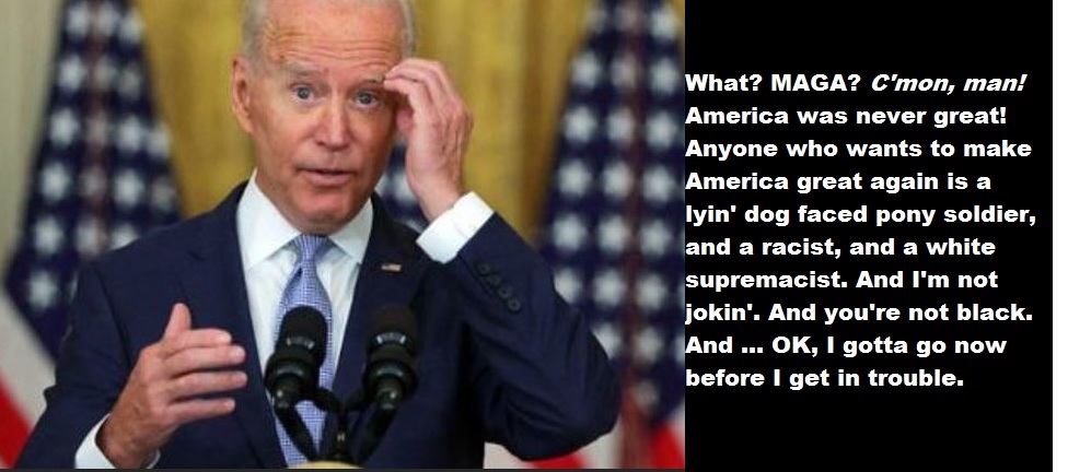 Emotional cripples can't think straight for long, because there are all these "triggers" around that keep popping up and making them get all emotional and illogical. Biden himself is "triggered" by the acronym MAGA, which stands for, Make America Great Again. How horrible. Who could blame him? We all know how deeply he loathes America.