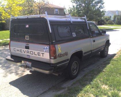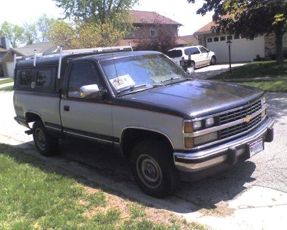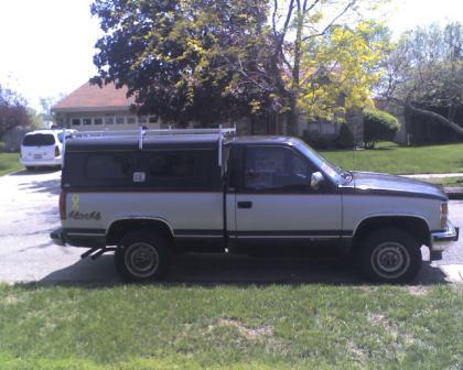 559,000 miles original owner. Second engine (Jasper crate motor 350 four-bolt) has 200,000 plus on it; second trans (auto 4 speed) has about 90,000 on it. 4X4 works fine; runs good. Good battery, tires, brakes. Air doesn’t work; some electrical problems (turn signals; power windows.) Painted once, about 150,000 miles ago. Super secure ARE cap with ladder racks and side-opening locking doors; will keep your tools or fishing tackle / hunting gear secure; practically bomb proof. Cap fits ’88 standard length 6'6" Chevy bed, 80” by 65”, even with ladder rack fits under the door into my garage; will not sell separately. $1,500.