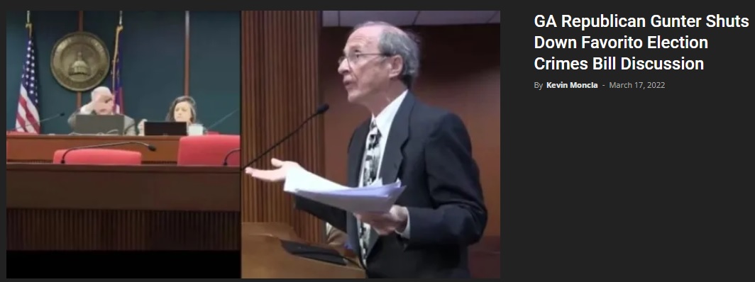 If you think only Marxocrats are involved in American election fraud, you need to read the UncoverDC article GA Republican Gunter Shuts Down Favorito Election Crimes Bill Discussion.