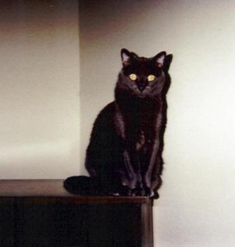 Movement in the lilies caught my attention, and a small, black, yellow-eyed face poked out. Out stepped a youngish, months-old, coal-black kitten, the spitting image of how Smokey must have looked at that age. He sniffed Smokey; he sniffed the new partially dug grave; and he more cautiously sniffed my hand. He allowed me to pick him up, and I took him into the house to show Marcie. More tears, this time while hugging a new kitty who didn’t know what was going on. Of course, Marcie was the one who cried; real men don’t ever cry, remember?