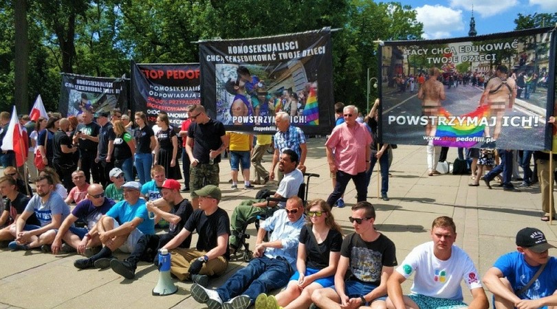Polish Catholics stand against blaspheming sodomite "Catholics"When the Polish version of "Gay Pride" decided to march on the Cathedral housing the famous Black Madonna (Our Lady of Czestochowa) the true Catholics of Poland turned out in force, and blocked their path. Since they were wildly outnumbered, the police broke up the sodomite "Catholics" and sent them home before anyone got hurt.