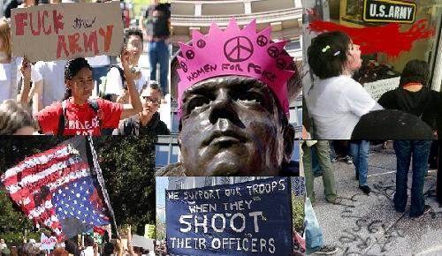 John Kerry's pro-Communist, anti-American, treacherous attack on America and on all American service men. Note the upside-down flag, in an inflammatory and insulting parody of the famous Iwo Jima Memorial.