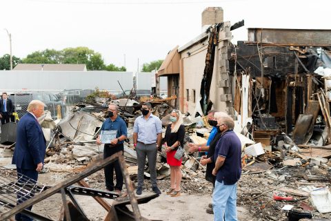President Trump stops the Marxocrat Party "peaceful demonstration" against bourgeois middle-class Kenosha citizens, cops, and the rule of law