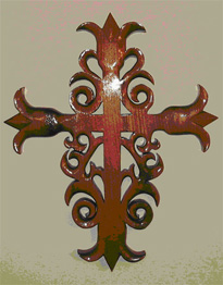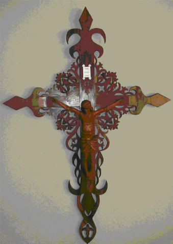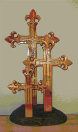 The symbolic Cross of Christ figures very prominently in Lithuanian culture. In our own Church, and George's, Holy Cross (Lithuanian) Catholic Church (Opens in a New Window), the stained glass windows behind the altar depict a myriad of images of unique, artistic Crosses of the style common to Lithuania.  |